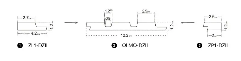 Paneellänge: 270 cm, Breite: 12,2 cm , Dicke: 1,2 cm