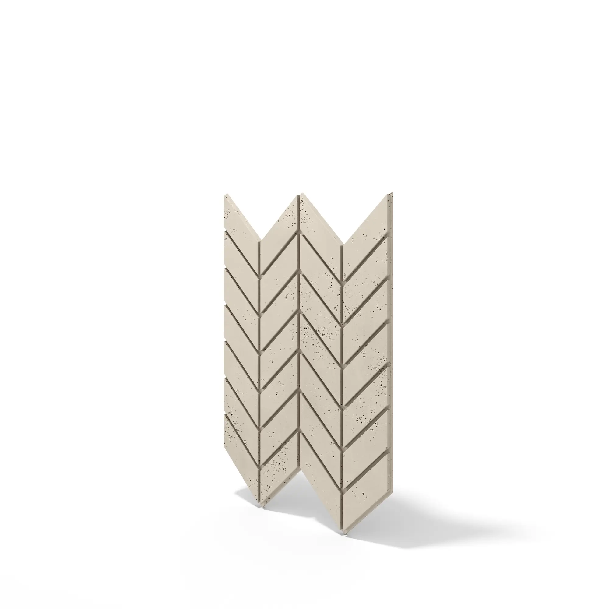 Die stilvolle 3D-Wandverkleidung mit lamellenähnlicher Struktur aus Sichtbeton überzeugt durch ein vielseitiges Erscheinungsbild, das sowohl in zeitgemäße als auch traditionelle Raumgestaltungen hervorragend passt.