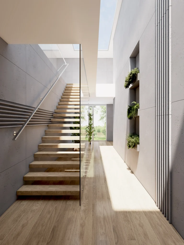 Besonders wirkungsvoll sind sie in Fluren mit hellen Böden oder mit einer schlichten Garderobe: Der Beton schafft ein architektonisches Fundament, das sofort Professionalität ausstrahlt.