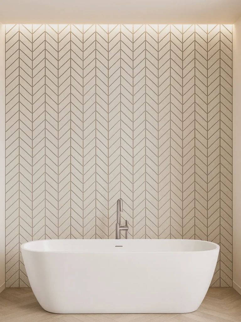 Auch im Badezimmer, das lange ausschließlich den Fliesen vorbehalten war, werden Paneele zunehmend als Gestaltungselement eingesetzt. Hinter einer freistehenden Badewanne, um den Spiegel herum oder als ruhige Fläche hinter dem Waschbecken erzeugen sie eine Atmosphäre, die eher an ein Spa oder ein Boutique-Hotel erinnert als an ein klassisches Bad. Die Wand wirkt hochwertig, modern und bewusst gestaltet.